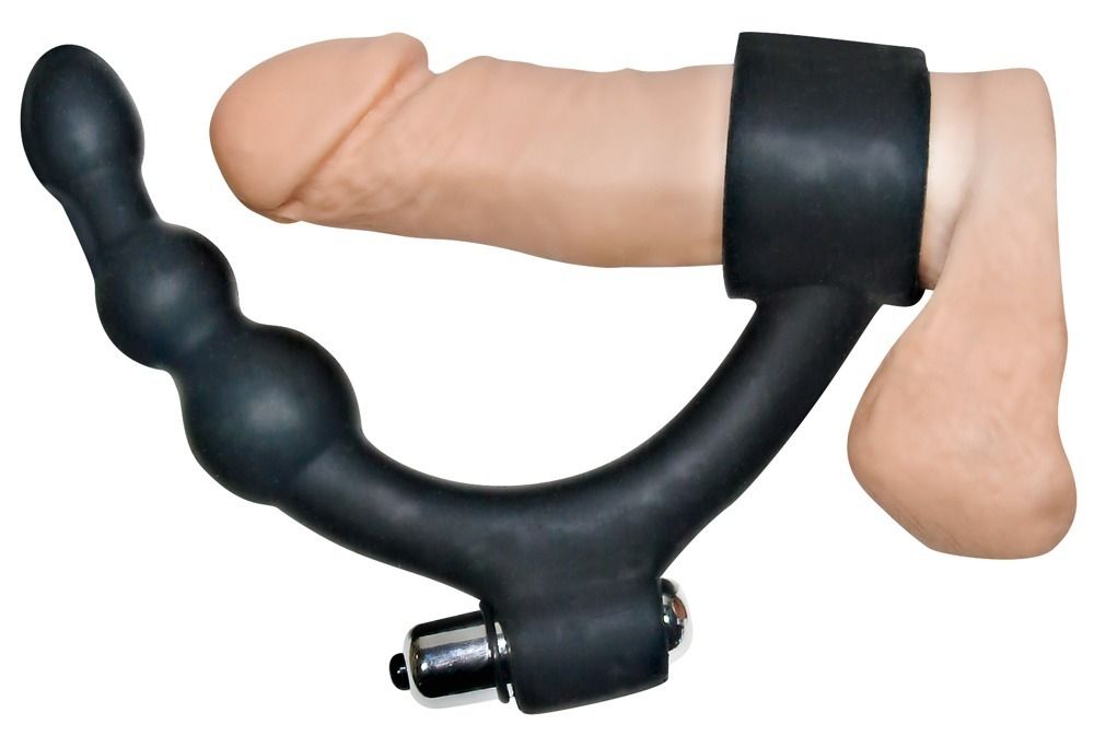 Эрекционное кольцо с вибрацией и анальным стимулятором Black Hour Penisring. Может использоваться для анальной стимуляции мужчины или для двойного проникновения. Батарейки в комплекте. Рабочая длина - 10 см. Диаметр шариков - 2, 2,5 и 3,5 см. Диаметр кольца - 3,5 см.