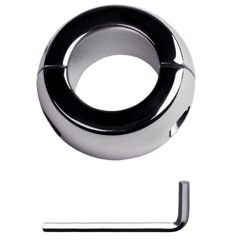 Утяжелитель на мошонку из медицинской стали открывается и закрывается с помощью шестигранника, входящего в комплект. Высота - 3 см. Внутренний диаметр - 3,5 см. Вес - 420 гр.