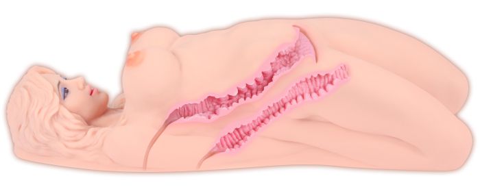 Настоящая секс-кукла: дизайн и текстура практически идентичны настоящей девушке. Реальное ощущение прекрасного лица и тела, половые органы анатомичны и абсолютно реалистичные! Вагина и анус имеют свою 3D текстуру, чтобы вы могли насладиться разнообразием впечатлений. Влагалище: 1. Имеет двойной слой, который виден при открытии верхних половых губ. Он создан для того что бы стимулировать ваше воображение. 2. Первая часть в сочетании с двойным слоем и выпуклой G-точкой, имеет частые влагалищные мембраны и заломы. 3. В средней части сочетание большого выпуклого изгиба и пунктирной складки. 4. Имеет сквозную структуру тоннелей для легкости ухода.. Упругий анус: 1. Анальный проход имеет двойной слой с анатомичным рельефом и изгибами. В средней части анального тоннеля имеется гребневидная складка около 1,5 см в диаметре, для еще более совершенной стимуляции. 2. Имеет сквозную структуру, для легкого ухода. Размеры - 50 x 27 x 14 см. Два любовных тоннеля - вагина и анус. Вес - 5,5 кг.