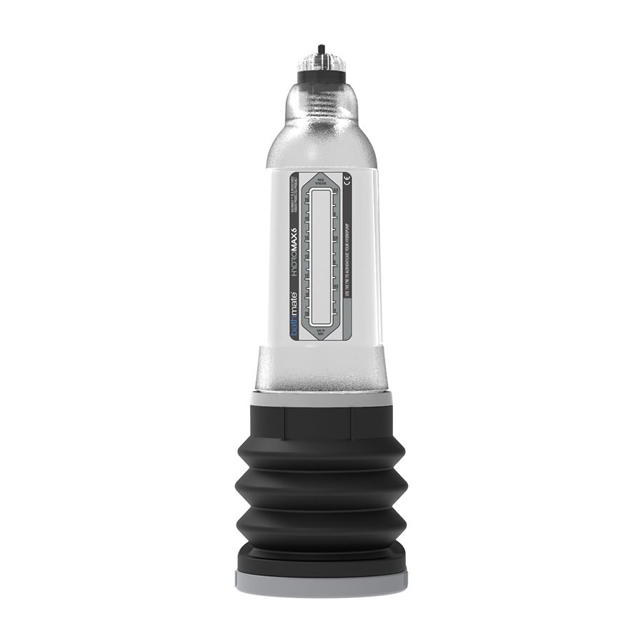 Гидропомпа является безопасным средством увеличения полового члена в домашних условиях. Подходит для мужчин с размером 10-15 см. Bathmate Hydromax является усовершенствованным вариантом гидропомпы Bathmate Hydromax: мощность насоса увеличена на 35%, обновлен клапан (добавлен переключатель для быстрого сброса воды и фиксации разряжения). Дополнительное удобство при измерении пениса - колбу можно поворачивать относительно насоса. Помпа абсолютно безопасна, проста в использовании и эффективна – она удобно крепится на основании пениса, не вызывая дискомфорта, и создает достаточное давление для эффективных тренировок, не требуя постоянной подкачки .В отличие от других вакуумных помп, гидропомпы Bathmate использует силу воды, поэтому ее нужно использовать в ванной или душе. Благодаря гидропомпе происходит усиленный прилив крови к тканям паховой области, каверозным телам, в результате чего увеличивается длина и диаметр полового члена, эрекция пениса становится более выраженной и продолжительной.