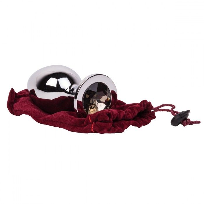 Гладкий большой плаг из отполированной до блеска стали с кристаллом серого цвета в основании. Металл - материал с большой теплопроводностью, сначала он будет прохладным, но быстро нагреется до температуры вашего тела. Стальные игрушки можно нагревать или охлаждать с помощью воды.