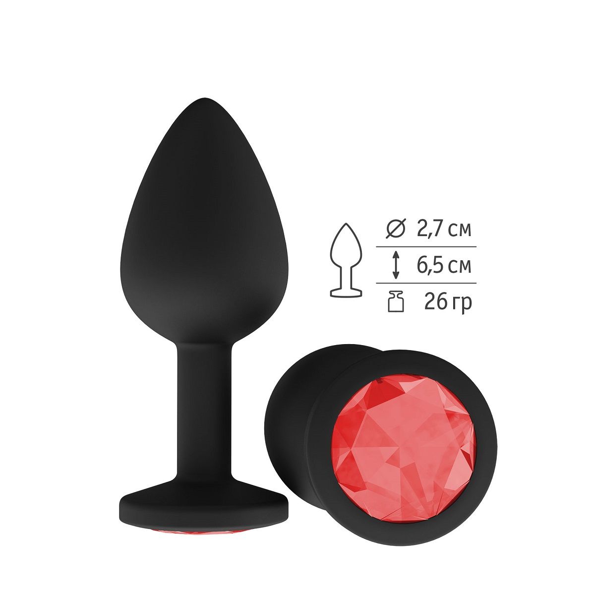 Гладенькая силиконовая пробка с кристаллом в ограничительном основании. Рабочая длина - 6,2 см.