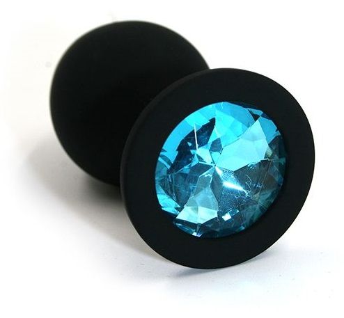 Анальная пробка из силикона черного цвета, размер M. Страз в основании круглой формы, выполнен из стекла голубого цвета. Упакована в вельветовый мешочек для хранения. Вес - 46,5 граммов.