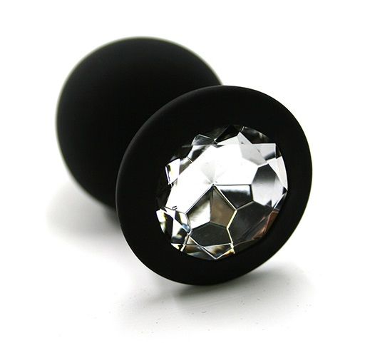 Анальная пробка из силикона черного цвета, размер М. Страз в основании круглой формы, выполнен из прозрачного стекла. Упакована в вельветовый мешочек для хранения. Вес - 46,5 граммов.
