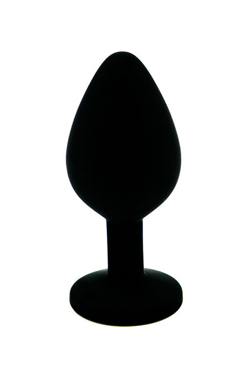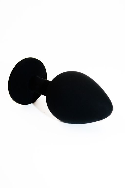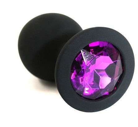 Анальная пробка из силикона черного цвета, размер M. Страз в основании круглой формы, выполнен из стекла темно-фиолетового цвета. Упакована в вельветовый мешочек для хранения. Вес - 46,5 граммов.