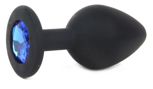 Чёрная силиконовая пробка с синим кристаллом размера M. Вес - 46 гр.