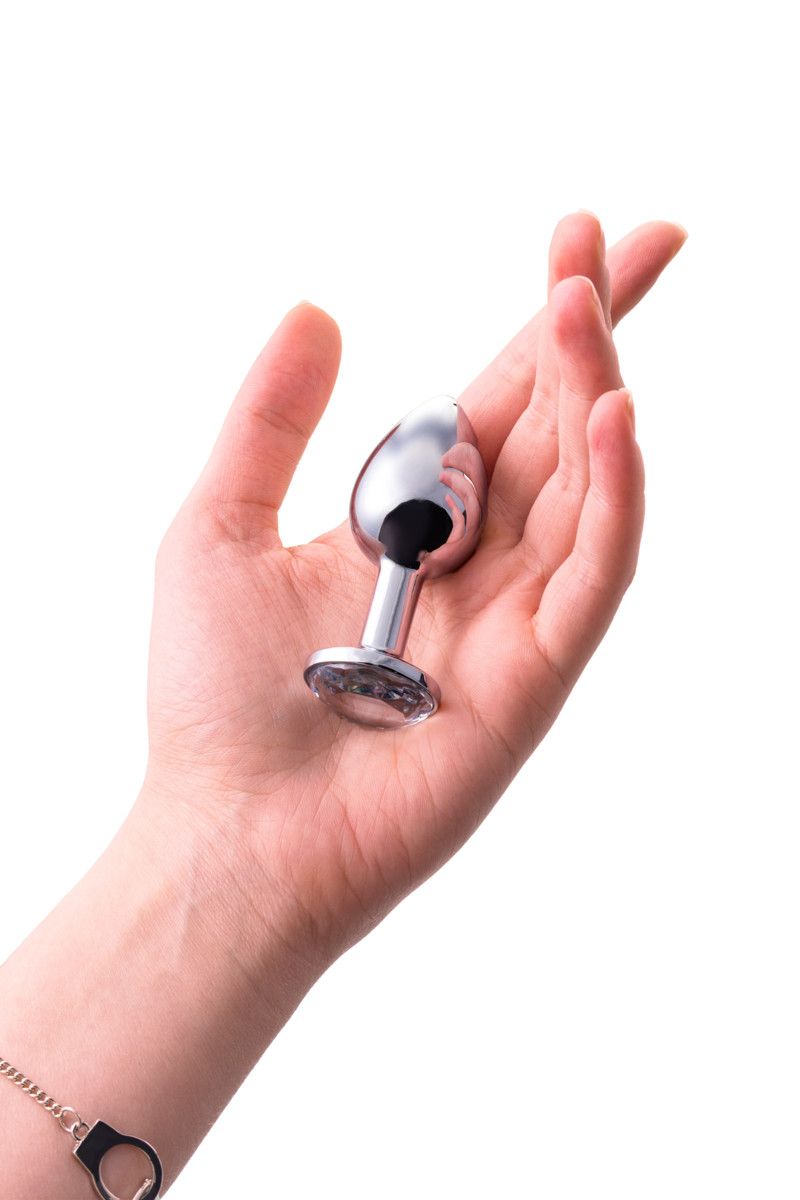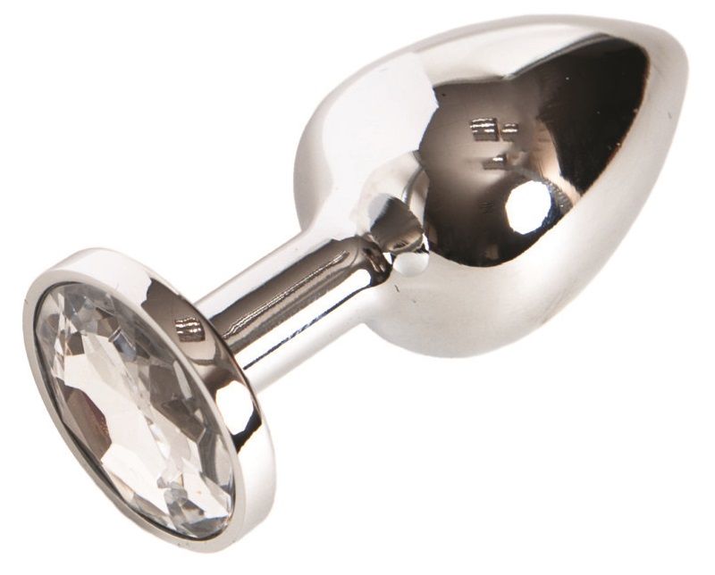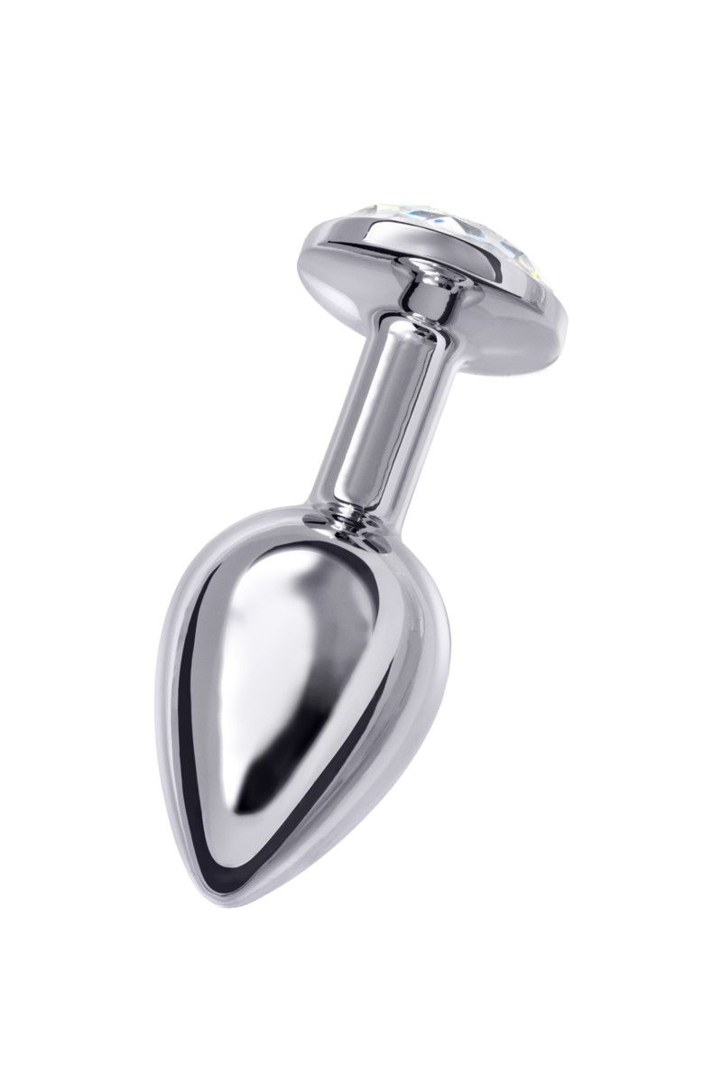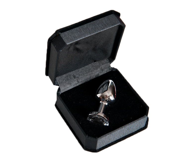 Малая серебристая анальная втулка с прозрачным кристаллом. Поставляется в подарочной упаковке.