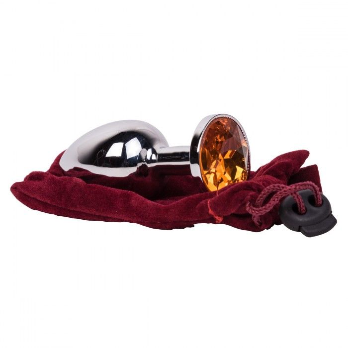 Гладкий мини-плаг из отполированной до блеска стали с кристаллом сочного оранжевого цвета в основании. Металл - материал с большой теплопроводностью, сначала он будет прохладным, но быстро нагреется до температуры вашего тела. Стальные игрушки можно нагревать или охлаждать с помощью воды.