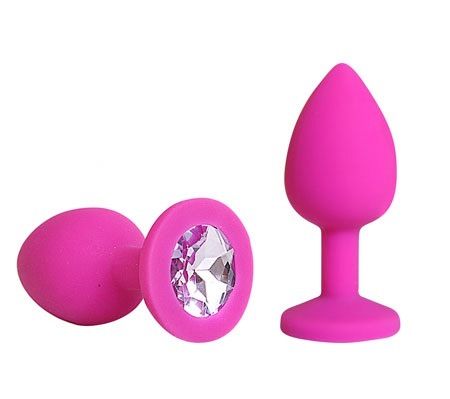 Розовая силиконовая пробка с розовым кристаллом размера L. Вес - 79 гр.