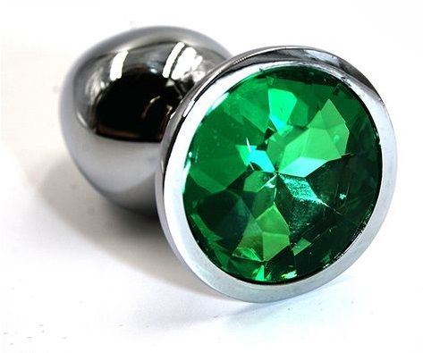 Анальная пробка из алюминия размер S. Страз в основании круглой формы, выполнен из стекла темно-зеленого цвета. Упакована в вельветовый мешочек для хранения. Вес - 52 гр.