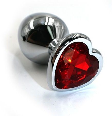 Анальная пробка из алюминия размер S. Страз в форме сердца выполнен из стекла красного цвета. Упакована в вельветовый мешочек для хранения. Вес - 53,8 гр.