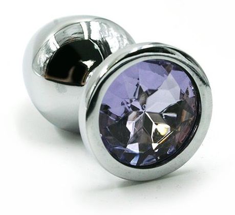 Анальная пробка из алюминия размер M. Страз в основании круглой формы, выполнен из стекла светло-фиолетового цвета. Упакована в вельветовый мешочек для хранения. Вес - 82,5 гр.