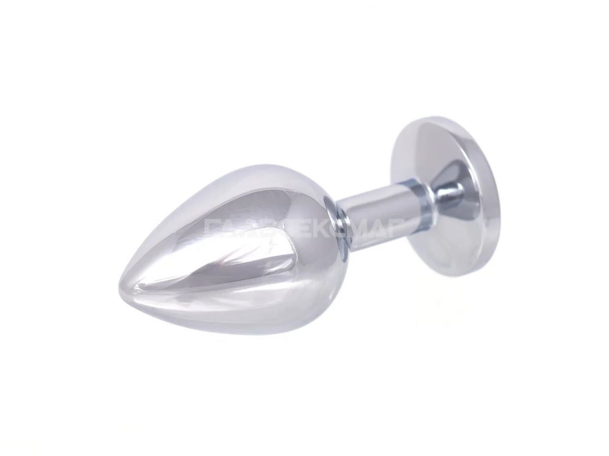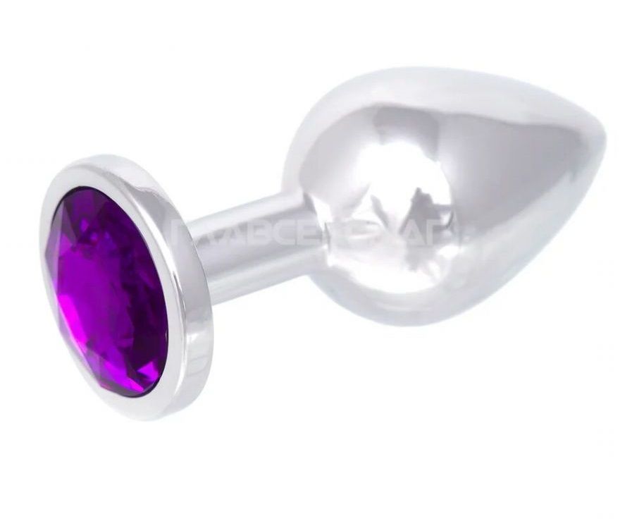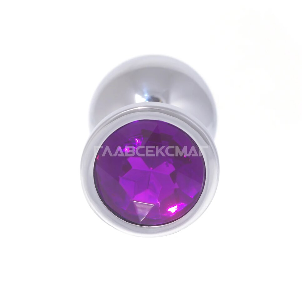 Серебристая анальная пробка с фиолетовым кристаллом. Рабочая длина - 7 см. Вес - 92 гр.