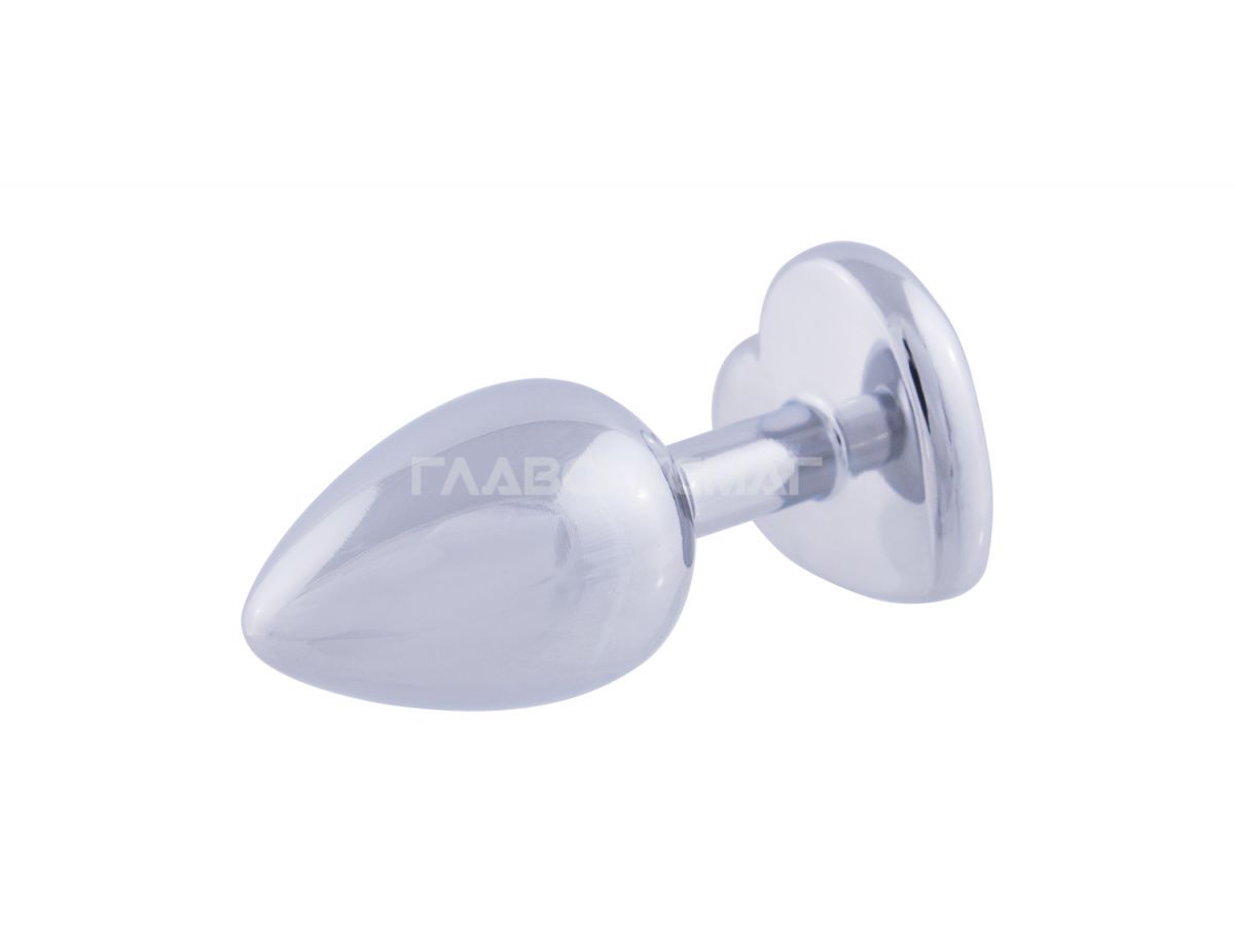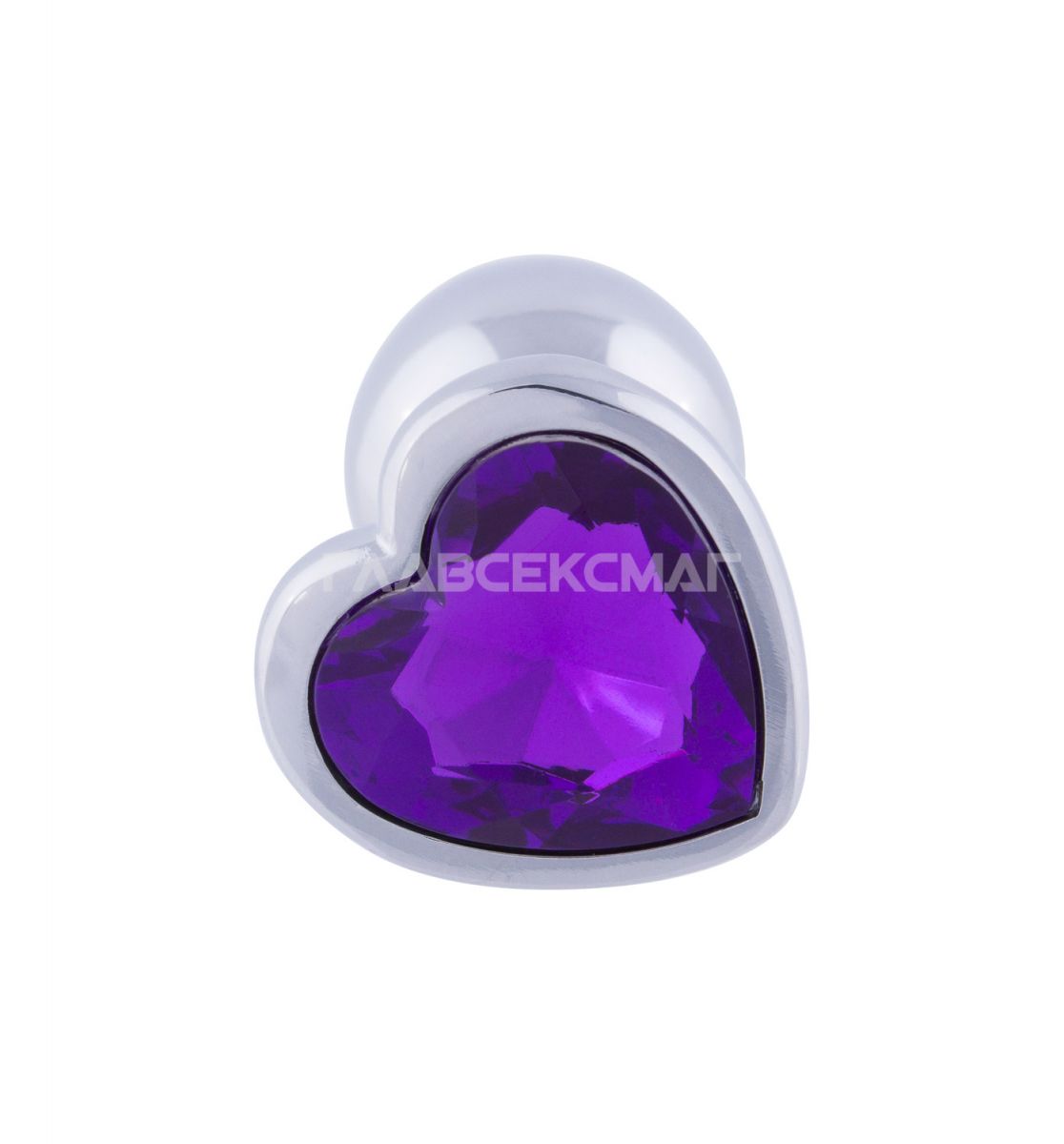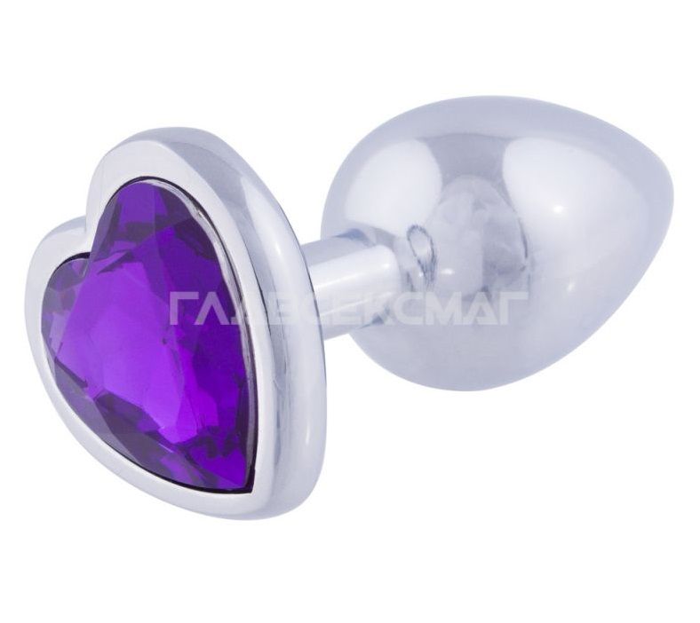 Серебристая анальная пробка с фиолетовым кристаллом-сердцем. Рабочая длина - 6 см. Вес - 52 гр.