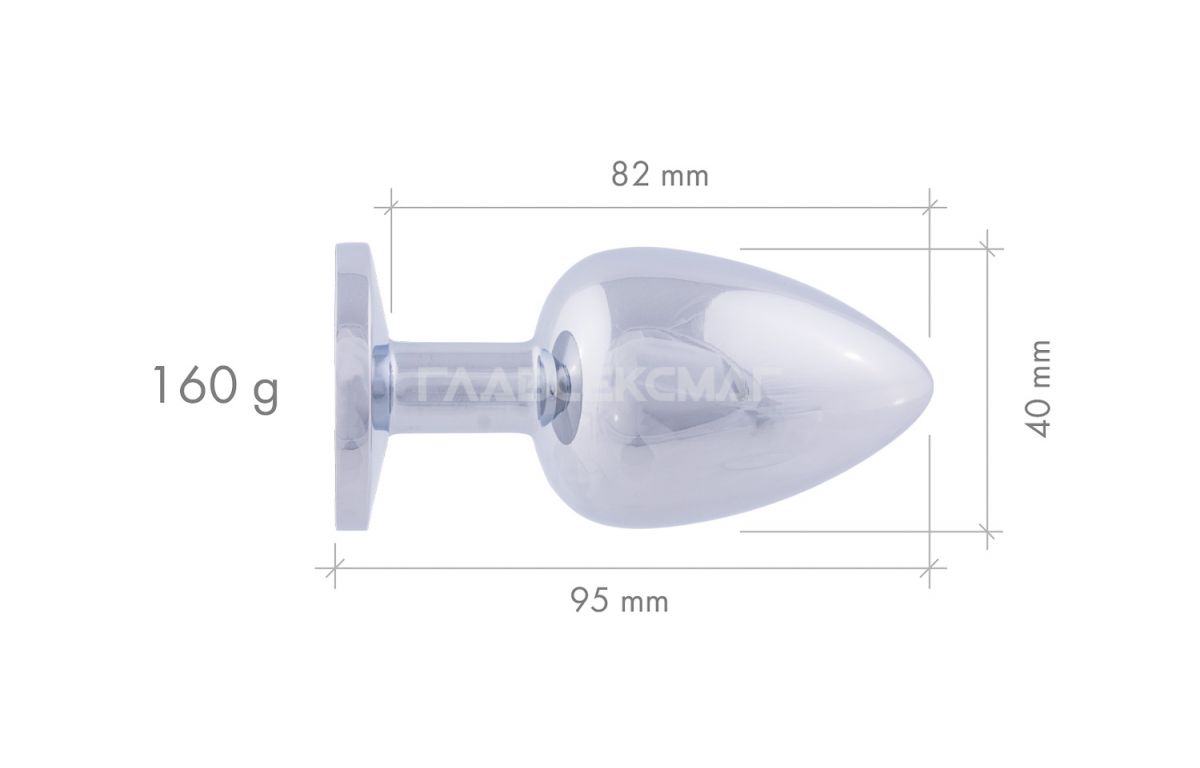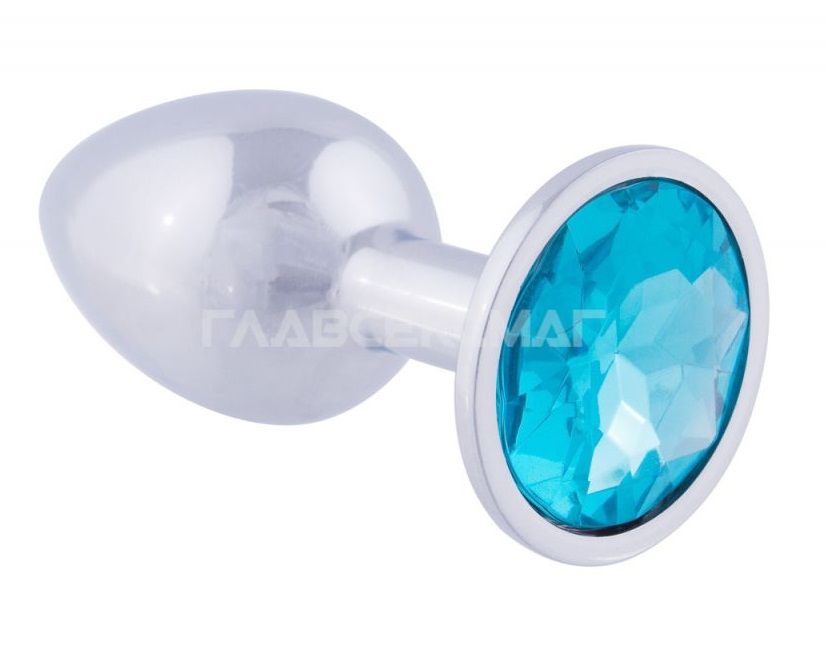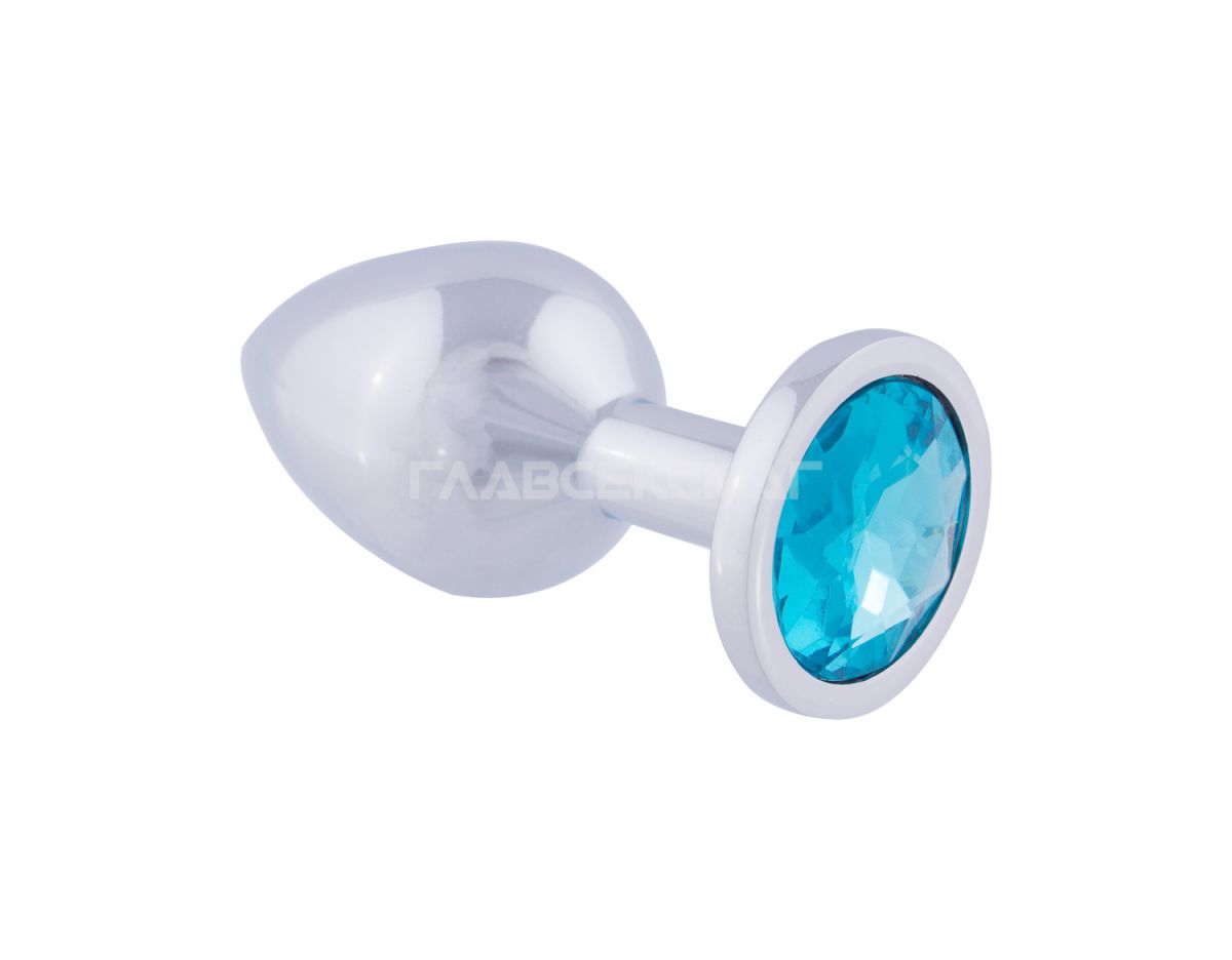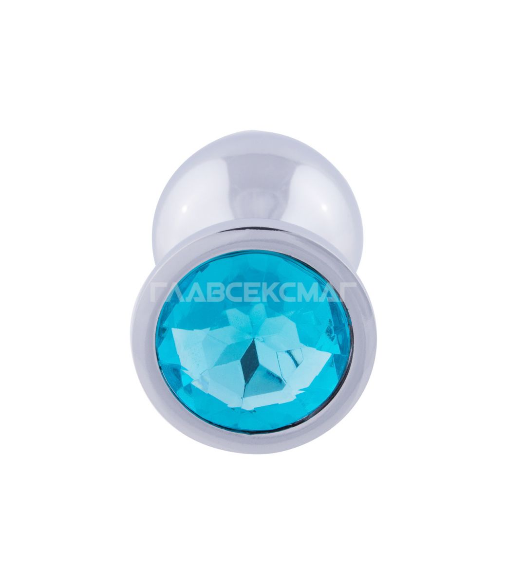 Серебристая анальная пробка с голубым кристаллом. Рабочая длина - 8,2 см. Вес - 160 гр.