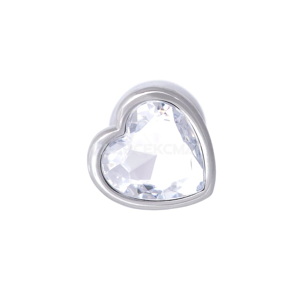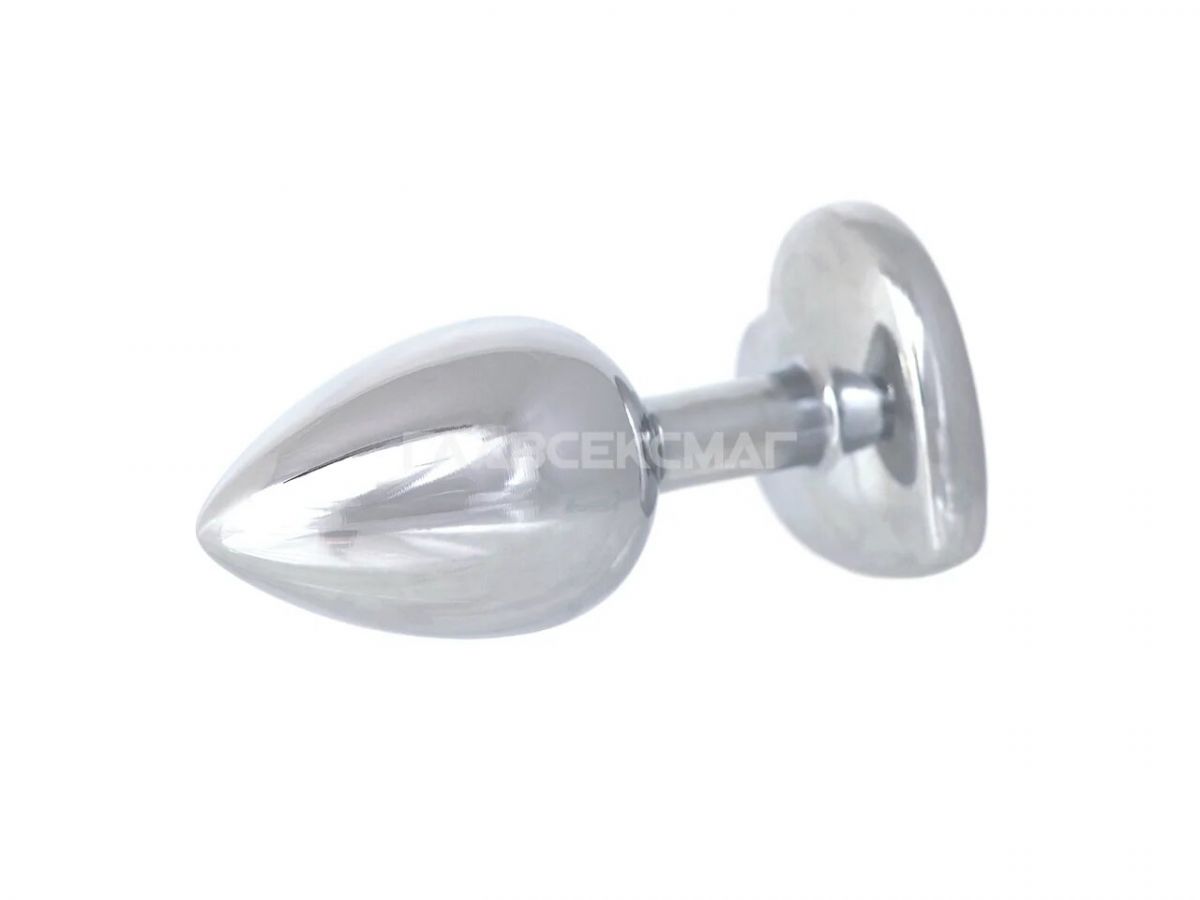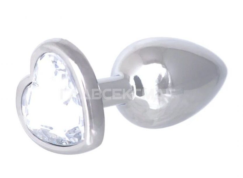 Серебристая анальная пробка с прозрачным кристаллом-сердцем. Рабочая длина - 6 см. Вес - 52 гр.