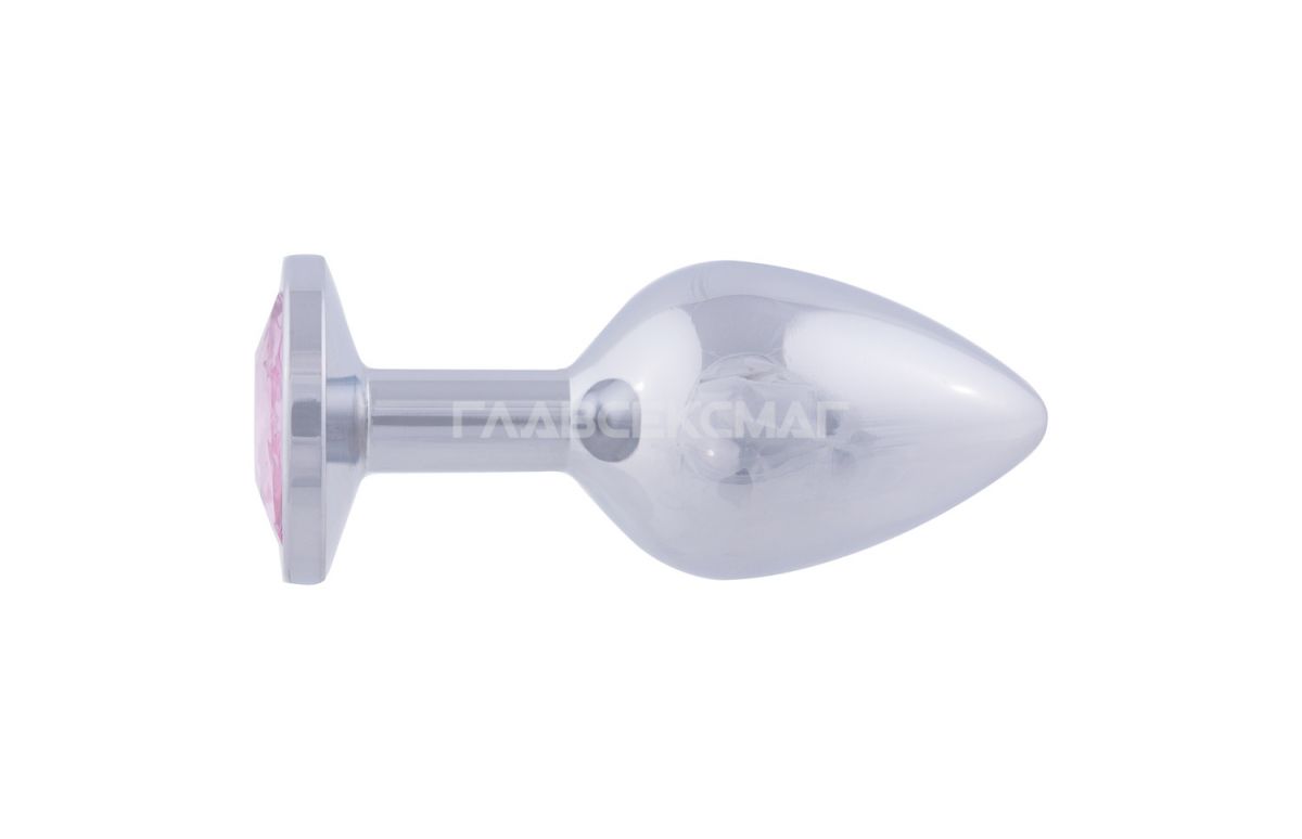 Серебристая анальная пробка с розовым кристаллом. Рабочая длина - 8,2 см. Вес - 160 гр.