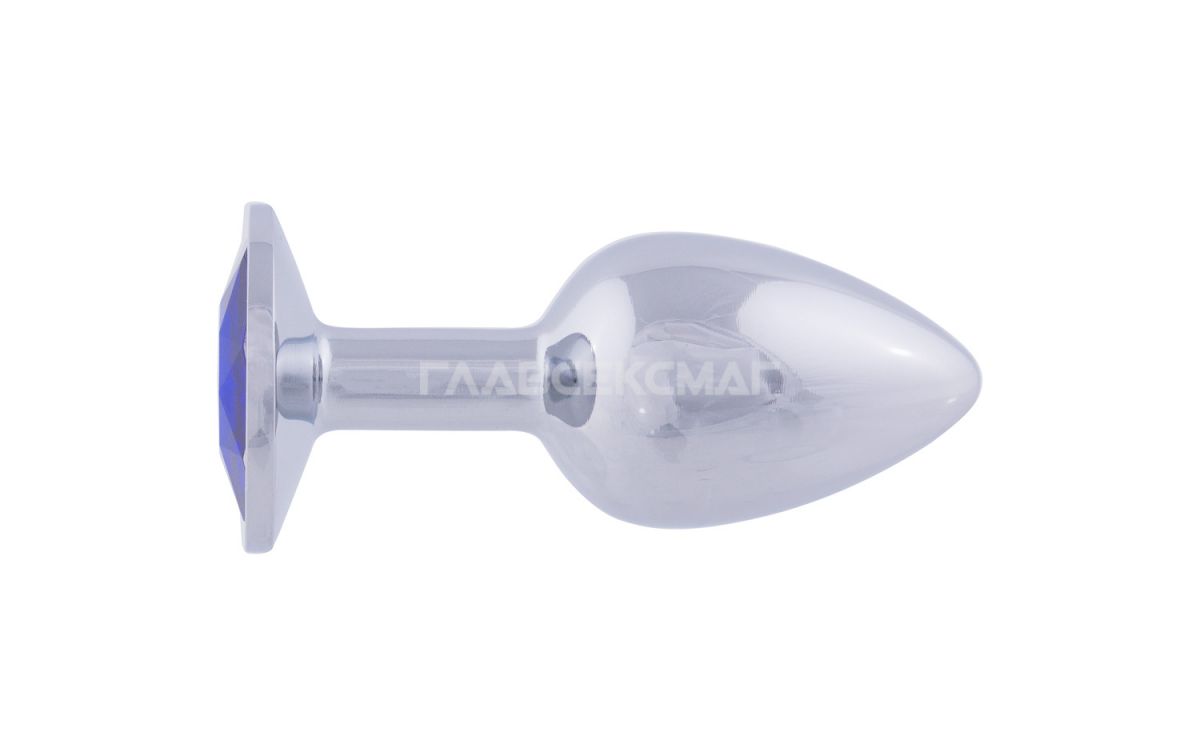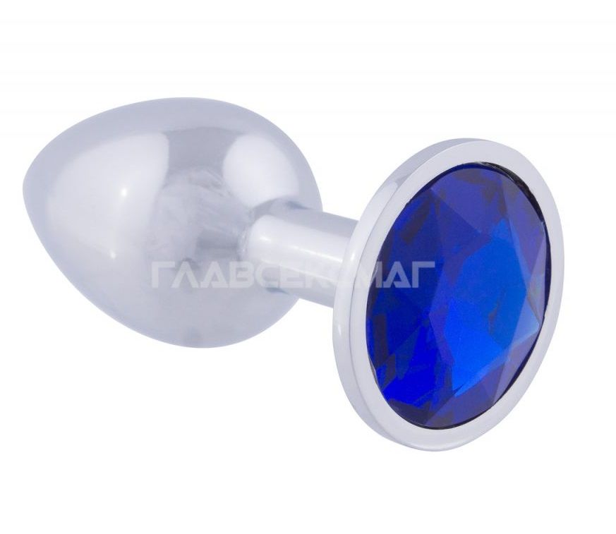 Серебристая анальная пробка с синим кристаллом. Рабочая длина - 7 см. Вес - 92 гр.