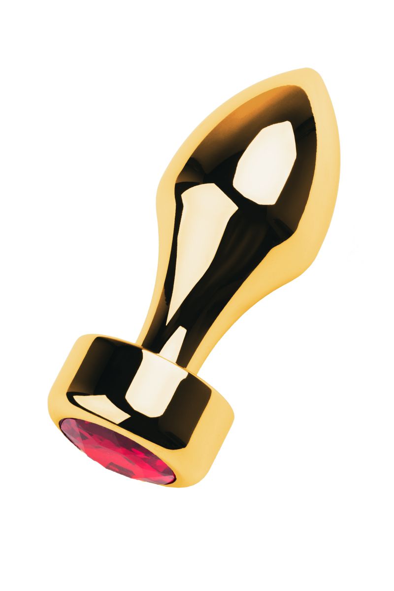 Золотистая каплевидная анальная пробка с красным кристаллом.