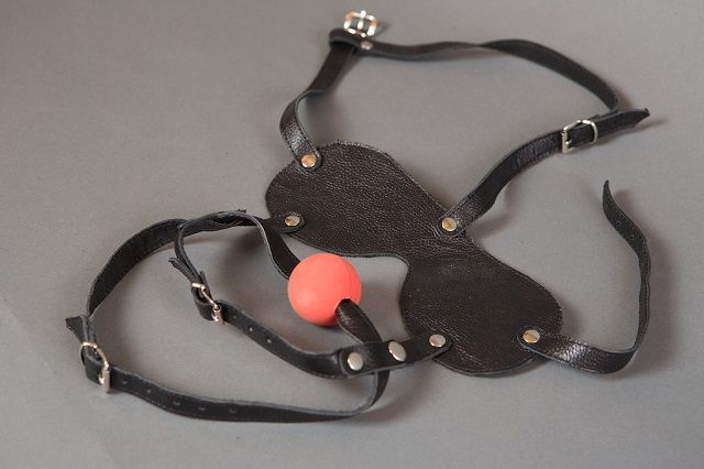 В практике БСДМ для ограничения или лишения подчиняющегося возможности видеть используются специальные маски. Это приводит к обострению ощущений и позволяет открыть новые грани чувствительности. Представленная бондажная маска-сбруя оснащена кляпом и шорами. Ремни позволяют регулировать размер и надежно фиксируют подбородок. Все ее детали тщательно продуманы и выполнены вручную.