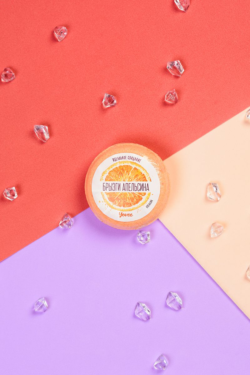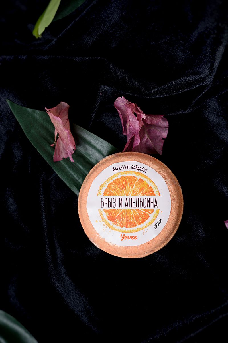Бомбочка для ванны «Брызги апельсина»Морская соль и масла в составе нежно ухаживают за вашей кожей! Идея для свидания: пригласите вашу половинку в ванну с бурлящим шариком и насладитесь сочными ароматами и игривыми пузырьками от бомбочки!