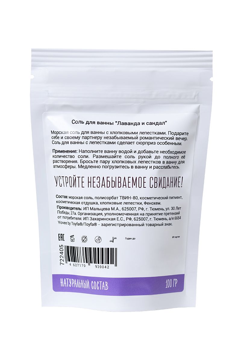 Подарите себе и своему партнеру незабываемый романтический вечер. Соль для ванны с лепестками сделает сюрприз особенным. Успокаивающий аромат лаванды поможет вам расслабиться и насладиться отдыхом в ванной. Подарите себе незабываемый вечер!