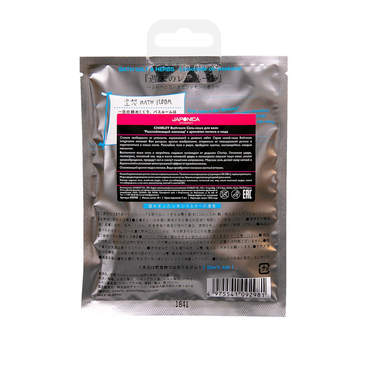 Станьте свободными от усталости, переживаний и дневных забот. Серия солей-саше Bathroom Imagination поможет Вам раскрыть крылья воображения, оторваться от повседневной рутины и переместиться в новые места. Расслабьте тело и разум, пробудите чувства, наслаждайтесь каждым моментом. Восполните ваши силы и согрейтесь медовым лимонадом от дедушки Charley. Лимонная цедра, лемонграсс, лимонный сок, мед и масло лимонной цедры и лемонграсса повысят тонус кожи, усилят кровообращение, придадут сил и снимут мышечное напряжение. Морская соль делает кожу мягкой и бархатистой и усиливает антистрессовый эффект от принятия ванны. Освежающий аромат меда и лимона. Вода приобретает лимонно-желтый оттенок.