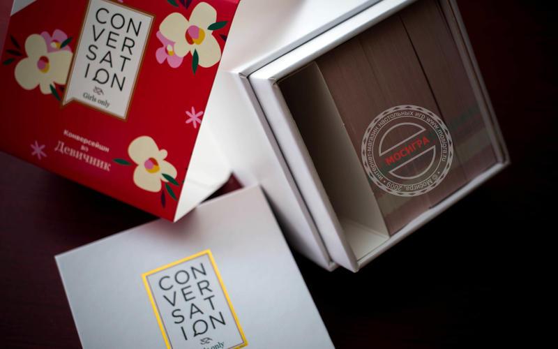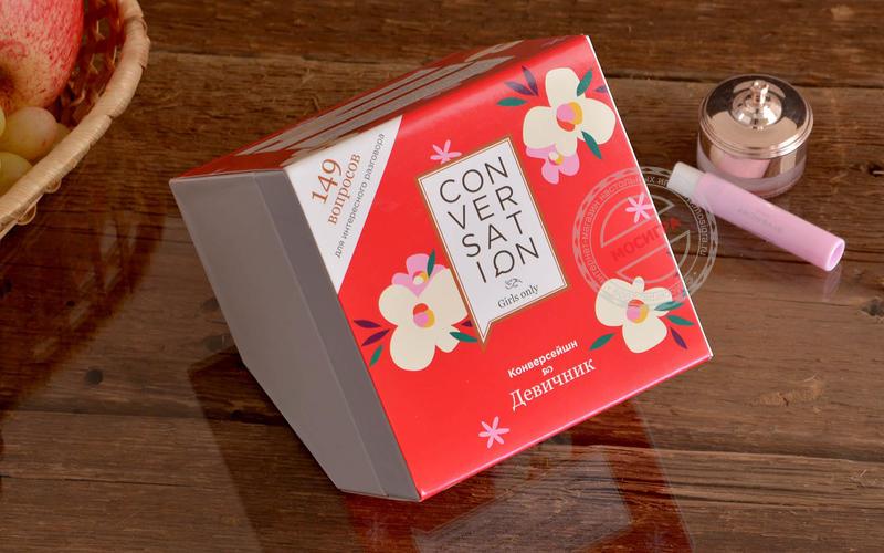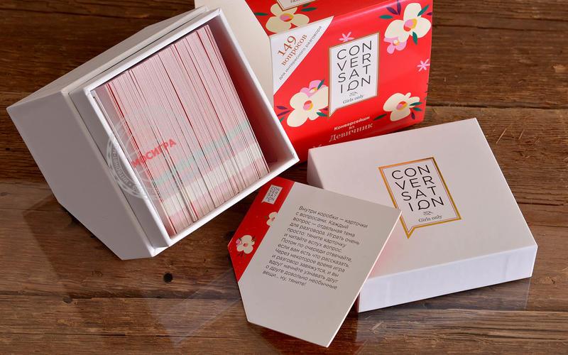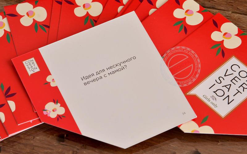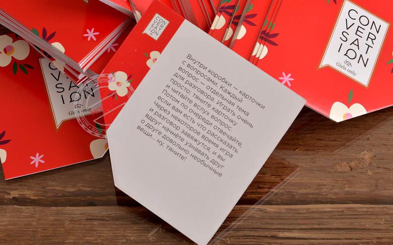 Игра для лучших подруг Всё очень просто: вы тащите карточку, читаете вопрос с неё и потом по очереди начинаете на него отвечать. Никаких очков, никаких правил, никаких принципов. Просто карточки для того самого диалога, который бывает между лучшими подругами. Иногда. С этой игрой — чуть чаще. Что происходит дальше? Вопросы составлены таким образом, чтобы «вытащить» как можно больше интересных историй из обсуждения. Наши тесты показали, что даже подруги, которые знают друг друга десятилетиями, нет-нет, да находят что-то новое и интересное. Что-то такое, чего ещё не знали друг о друге. Список вопросов специально подобран так, чтобы «раскрутить» компанию на очень интересный диалог. После него вы точно будете знать друг друга лучше. И часто — с неожиданной стороны. Для кого и для чего эта игра? — Конечно же, брать на девичник! — Или на посиделки подруг :) Наливайте кофе, чай или вино, доставайте коробку — и пускай всё вокруг подождёт! — В дорогу: коробка маленькая, поле не нужно, поэтому игра отлично зайдёт в автобусе, на яхте, в поезде и даже в самолёте на соседних креслах. — В подарок. Коробка оооочень красивая. Почему это так круто работает? Потому что вопросы составлены так, чтобы каждый мог рассказать о себе что-то хорошее, но неожиданное. То есть это повод для всех в компании показать себя с лучшей стороны. Игра «цепляет» даже тихонь, которые обычно отсиживаются в стороне от веселья и не очень много разговаривают. Одним словом — эта штука нравится почти всем. Что в комплекте? — 149 карточек с вопросами, каждый из которых может вызвать бурное обсуждение. Одной коробки обычно хватает на 6-8 партий по часу-два, это зависит от размера компании. — Карточка с правилами (вы их уже знаете, их нет) — и она же работает как разделитель для карт (чтобы отличаться от игры к игре те, которые вы уже использовали от новых).