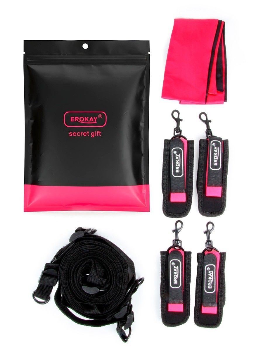 Черно-розовый эротический набор: фиксатор, оковы, наручники, повязка. Зафиксируйте партнера на кровати при помощи фиксатора, оков и наручников. Предварительно повяжите вокруг его головы повязку. Игра началась! В комплекте: фиксатор, оковы, наручники, повязка.
