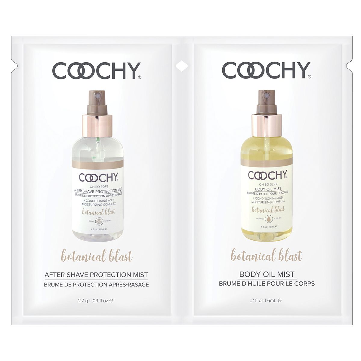 Полноценный и уникальный уход за кожей от Coochy. Масло с феромонами позволяет делать кожу здоровой и упругой, оставляя на ней легкое сатиновое ощущение. В составе комплекса - масло сои, сафлоры, сладкого миндаля, витамин А, витамин Е. Масло сафлоры предупреждает сухость, масло сладкого миндаля делает кожу мягкой, витамин А обновляет кожу и борется с ее увяданием, витамин Е уменьшает рубцы и растяжки. Масло содержит феромоны, которые повышают привлекательность для противоположного пола. Второе средство в комплекте - защищающий лосьон после бритья (пропитанная средством тканевая салфетка). В его составе натуральные экстракты масел и ультра увлажняющие компоненты. Мист создает тонкий защитный успокаивающий барьер на коже после эпиляции, сужает поры и предупреждает раздражение. Наносится после бритья или эпиляции. В составе средства натуральные ингредиенты - лаванда, огурец, ромашка, лакрица, пшеница, малина, лилия, шалфей, клевер, дуб. Мист оставляет кожу гладкой и шелковистой, нежно оберегая ее. Объем масла - 6 мл. Объем лосьона после бритья - 2,7 гр.