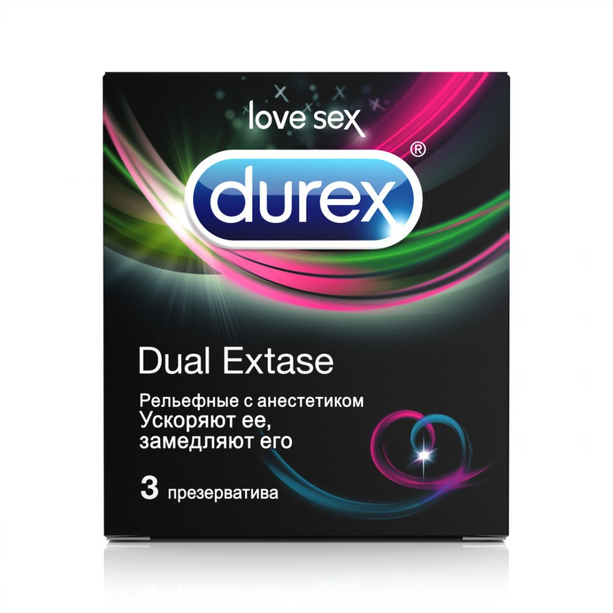 Презервативы с рельефной структурой Durex Dual Extase смазаны эффективным гелевым лубрикантом, в состав которого входит 5% бензокаина – анестетика, продлевающего половой акт для мужчины. Благодаря этому, партнеры получают уникальную возможность достигнуть сокрушительного оргазма одновременно. Поверхность латексных изделий покрыта ребристыми выступами и мелким краплением для дополнительной стимуляции эрогенных зон партнерши при проникновении. Презервативы прошли высокотехнологичные проверки на прочность и целостность, поэтому секс с их применением не только невероятно чувственный, но и полностью защищенный.