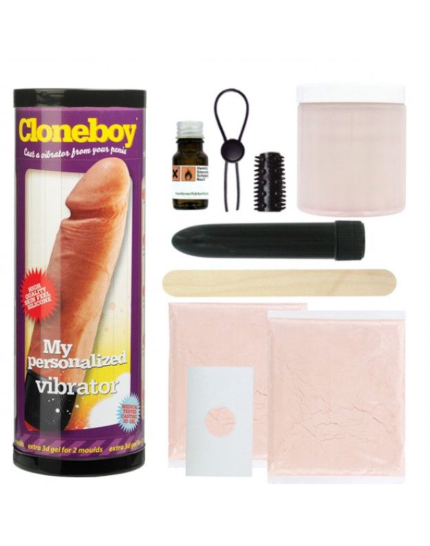 CloneBoy - это набор необходимых элементов для создания точной копии Вашего члена. Он позволит создать Ваш собственный вибратор за несколько простых шагов. В отличие от других более дешевых наборов, этот CloneBoy содержит две упаковки 3D геля - Вы всегда будете иметь второй шанс создать идеальный слепок Вашего пениса. Еще одним преимуществом CloneBoy является то, что он не содержит гипс, который может вызвать воспаление кожи. Эта процедура очень простая - нужно лишь следовать пошаговой инструкции, которая прилагается к товару. Полная процедура займет у вас 10-15 минут. Ее можно осуществлять как одному, так и вместе с партнершей, которая станет лучшим помощником в этом увлекательном деле. Состав набора: - тубус - 2 пакетика 3D геля - отвердитель - силиконовая резина - эрекционное кольцо - желейный стимулятор - вибромоторчик - ложечка для перемешивания - основание для вибратора - перчатки - руководство с иллюстрациями.