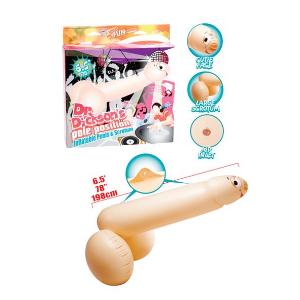 Надувной фаллос для вечеринок. С забавной мордашкой на головке и пышной мошонкой.