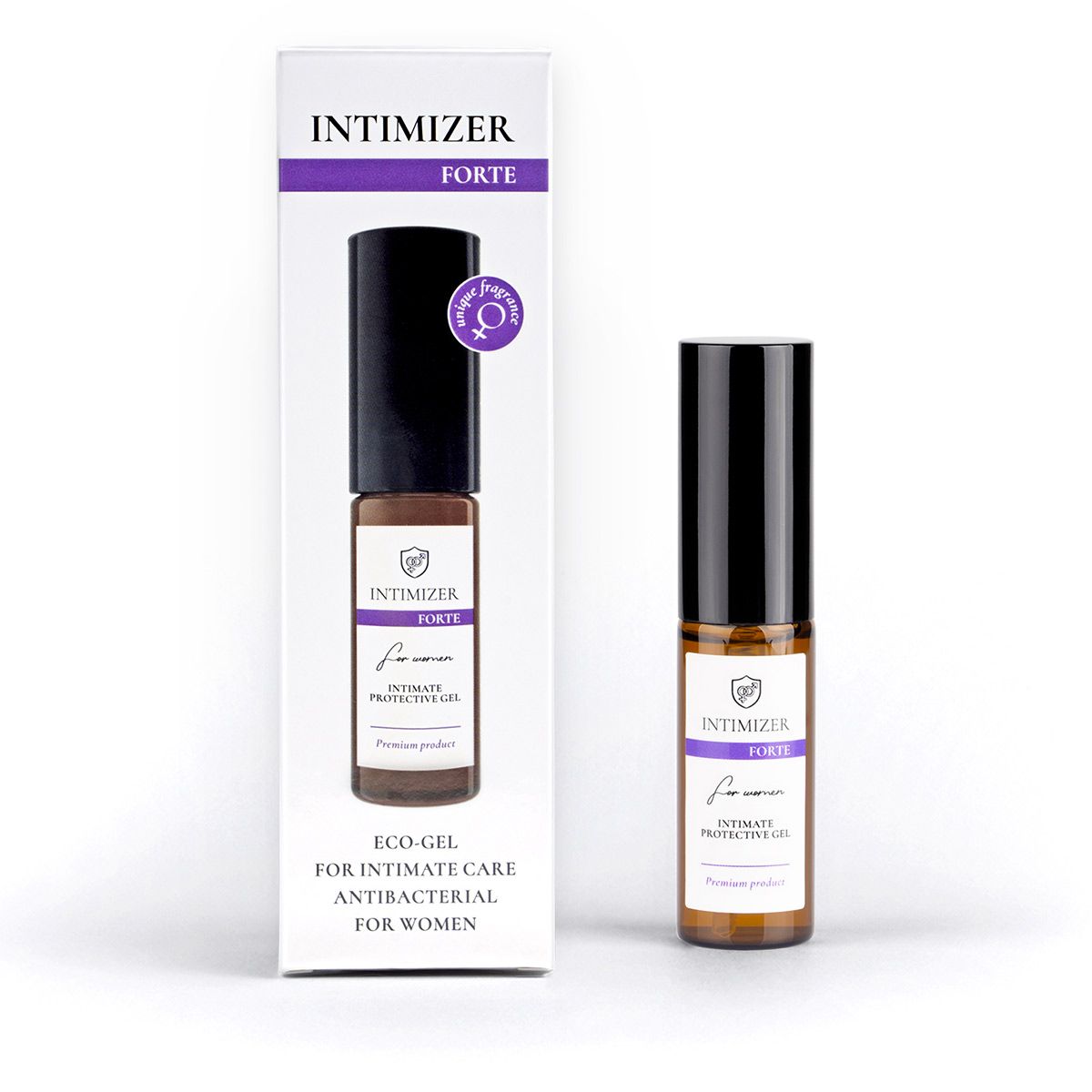 Новое поколение средств для интимной гигиены от бренда INTIMIZER. Богатый натуральный состав - не имеет аналогов по количеству и концентрации активных компонентов! Комплексно выполняет все необходимые функции по поддержанию интимного здоровья и комфорта. Восстанавливает микрофлору. Оказывает длительное освежающее и ухаживающее действия, а также имеет дополнительные терапевтические свойства. Одобрен гинекологами. Эко-гель INTIMIZER на 100% заменяет привычный интимный уход. INTIMIZER FORTE – это усиленная высококонцентрированная формула широкого спектра действия, профессиональная линия средств бренда INTIMIZER. Более быстрая и надежная защита против широкого спектра патогенных микроорганизмов за счет увеличенной (на 50%) концентрации Smart частиц серебра, 30ppm. Ускоренное (на 35%) восстановление здорового микробиома интимной зоны и улучшенная профилактика возникновения дисбактериоза за счет комплекса пребиотиков и постбиотиков. В 2 раза более интенсивный увлажняющий эффект за счет еще одного нового элемента формулы – водосберегающей молекулы Aquaxyl. Еще больше привлекательности с двойной концентрацией феромона Iso E Super. Идеален для ежедневного применения и в качестве SOS-средства. Наносится и не требует смывания. Обеспечивает длительный комфорт и защиту. Предотвращает воспалительные процессы и инфекции, развитие дисбактериоза и вагинита. Помощь от молочницы. Заживляет микротрещинки, способствует ускоренному восстановлению после родов и операций. Спасает от сухости - увлажняет, питает, поддерживает эластичность и упругость. Деликатно отбеливает и омолаживает, сохраняя интимную эстетику. Гель на водной основе улучшает комфорт романтических отношений. Активные компоненты: Smart частицы серебра Молочная кислота Комплекс пребиотиков и постбиотиков (PREBIULIN, INULIN, WORESANA), Д-пантелол Fucogel, Критмум морской, Hydrovance, Биосахаридная смола, Гидролат календулы Гидролат Ромашки. Не содержит синтетических отдушек. Имеет чувственный аромат пачули.