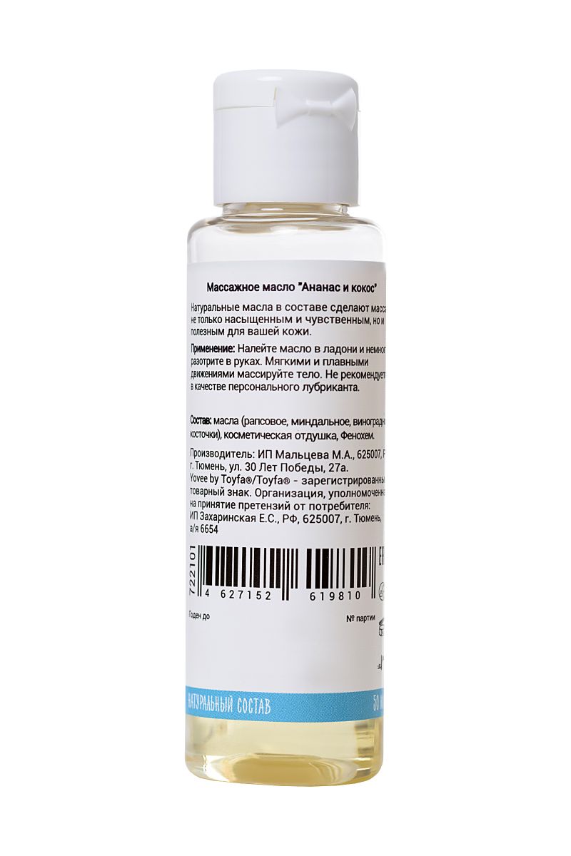 Натуральные масла в составе сделают массаж не только насыщенным и чувственным, но и полезным для вашей кожи. Отлично скользит и смывается водой. Пикантный и тропический аромат кокоса и ананаса с лёгкостью расслабит и подготовит вас к чувственному массажу.Идея для свидания: Подготовьте фрукты и коктейли и наденьте летний наряд. Предложите партнёру райский массаж. Сделайте массаж своим обнажённым телом — так он станет ещё более интимным и чувственным. Такое свидание останется в памяти надолго!