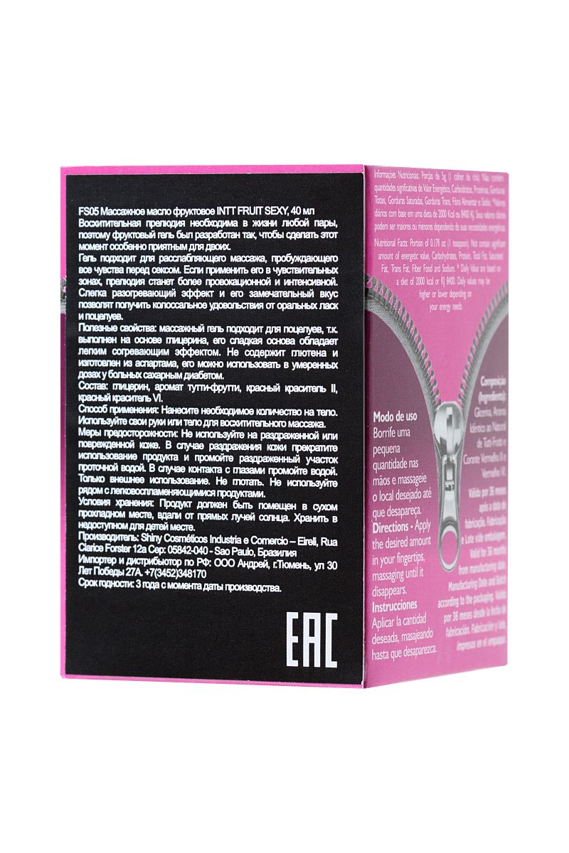 Искра. Буря. Экстаз. Может ли массаж подарить такое? Может, если это массажное масло для поцелуев Intt Fruit Sexy с фруктовым ароматом. Позволяет экспериментировать. Поскольку масло обладает разогревающим эффектом и предназначено для поцелуев, можно не ограничивать себя в сценариях интимных игр. Нанесите Intt Fruit Sexy на тело, поцелуйте несколько чувствительных точек и подуйте на них в течение 3 секунд — возбуждение не заставит себя долго ждать. Провоцирует желание. Притягательный аромат фруктов создает игривое настроение и помогает расслабиться. Абсолютно безопасная и протестированная формула без сахара и глютена подходит даже аллергикам и диабетикам. Не оставляет ощущения липкости и легко смывается водой. INTT — удовольствие в каждой капле.