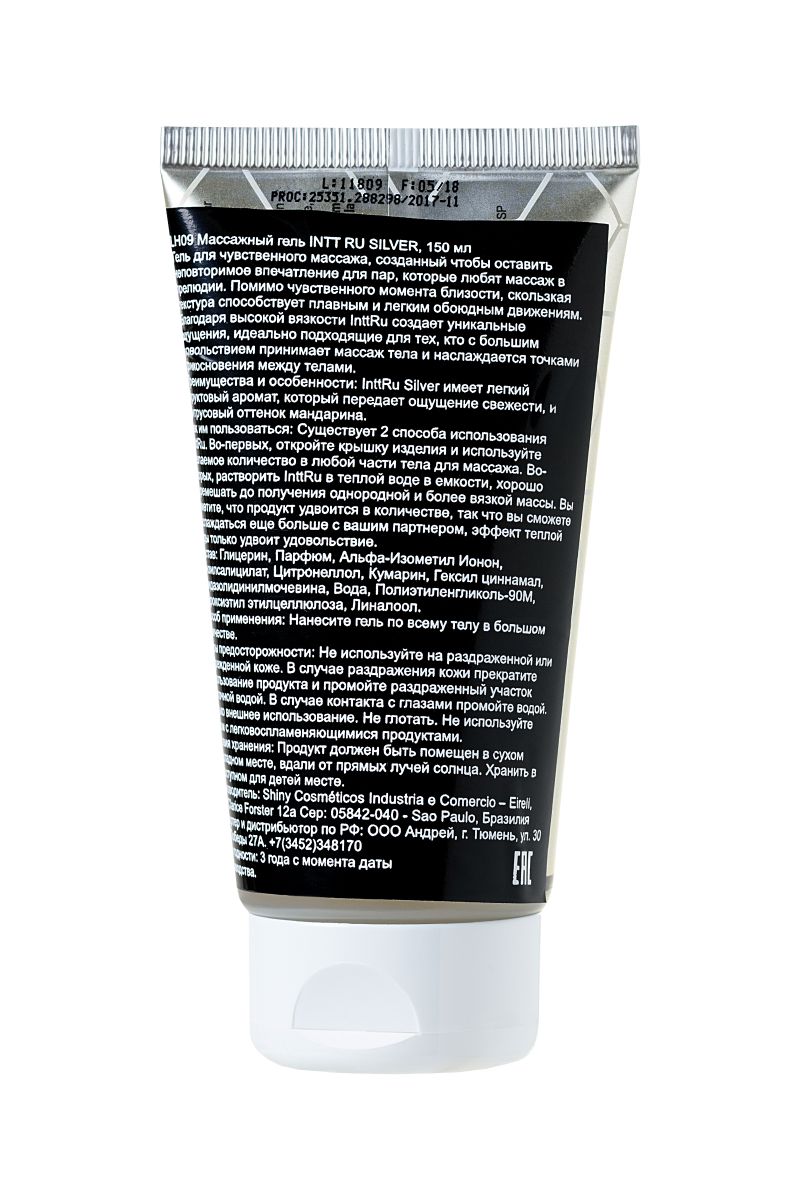Массажный гель Intt Ru Silver с фруктовым ароматом — беспроигрышный вариант для совершенных моментов близости. Подвластны особенные виды массажа. Плотная, не растекающаяся текстура геля обволакивает тело и прекрасно расслабляет. Она превосходно справится даже со специальной техникой массажа - телом по телу. Приятный аромат фруктов с цитрусовым оттенком отвлекает от повседневных мыслей и настраивает на близость. Уникальная формула позволяет экономично расходовать количество геля. Просто разведите часть геля теплой водой в отдельной емкости и наслаждайтесь еще большим скольжением. Абсолютно безопасный и клинически проверенный состав не вызывает аллергии или раздражения, не оставляет липких пятен и легко смывается водой.Intt Ru Silver создан для вашего удовольствия.