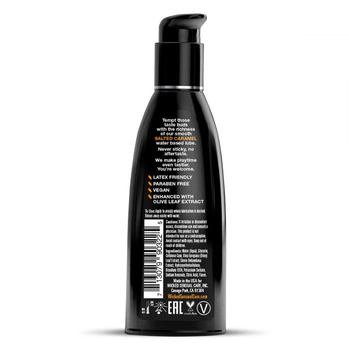 Нежный лубрикант на водной основе с аромтаом соленой карамели для изумительных эротических ласк. При производстве Wicked не используется сахар, сладость придает выжимка из растения стевия, благодаря чему лубрикант не оставляет послевкусия, не липнет и дарит удивительное ощущение скольжения. В составе лубриканта есть экстракт оливкового листа, который является природным обеззараживающим средством, мягкая формула подходит даже для чувствительной кожи. Удобная упаковка с помпой поможет насладиться моментом близости в полной мере. Не содержит парабенов, безвреден для латекса.
