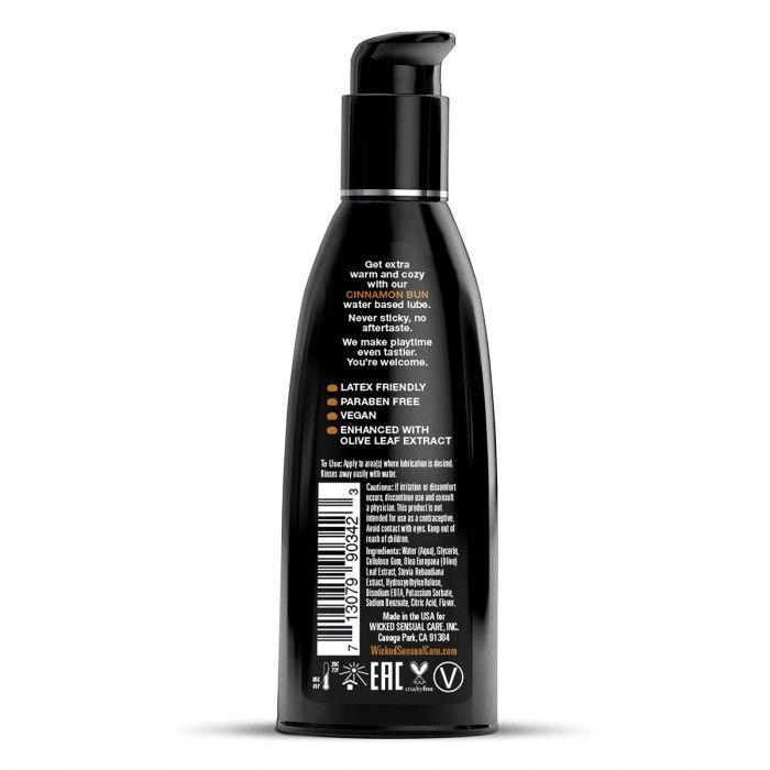 Изысканный лубрикант на водной основе с ароматом всеми любимых булочек с корицей для изумительных эротических ласк. При производстве Wicked не используется сахар, сладость придает выжимка из растения стевия, благодаря чему лубрикант не оставляет послевкусия, не липнет и дарит удивительное ощущение скольжения. В составе лубриканта есть экстракт оливкового листа, который является природным обеззараживающим средством, мягкая формула подходит даже для чувствительной кожи. Удобная упаковка с помпой поможет насладиться моментом близости в полной мере. Не содержит парабенов, безвреден для латекса.
