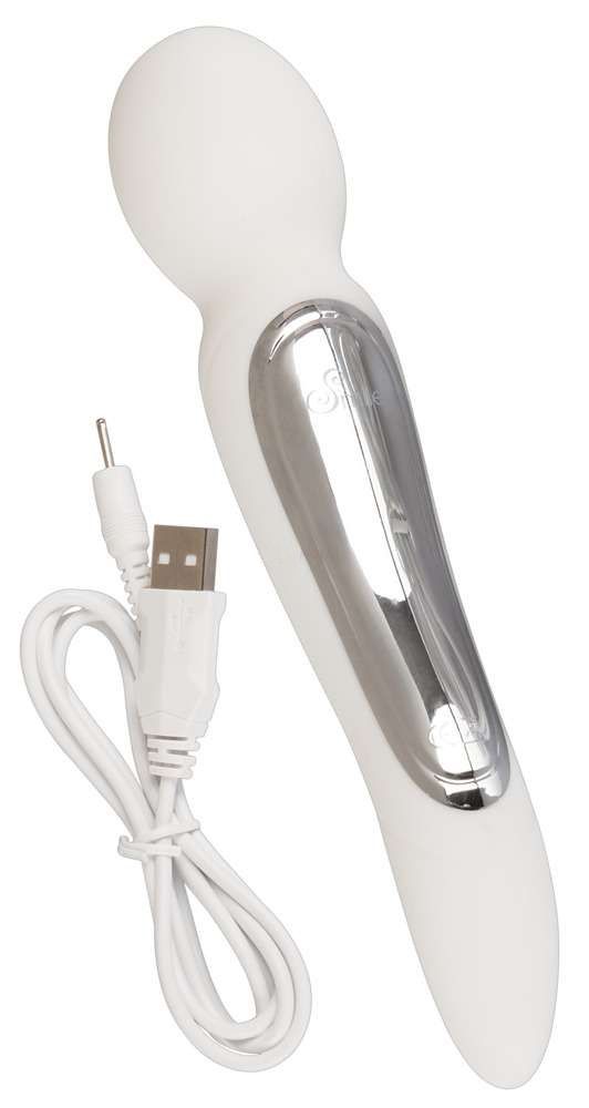 Элегантный белый вибратор с двумя мощными моторчиками. Один из которых находится в шарооборазном конце игрушки, а второй в более узком и чуть загнутом кончике. 10 режимов вибрации у каждого моторчика управляются отдельно нажатием кнопки, перезаряжаемый, в комплекте USB-кабель.