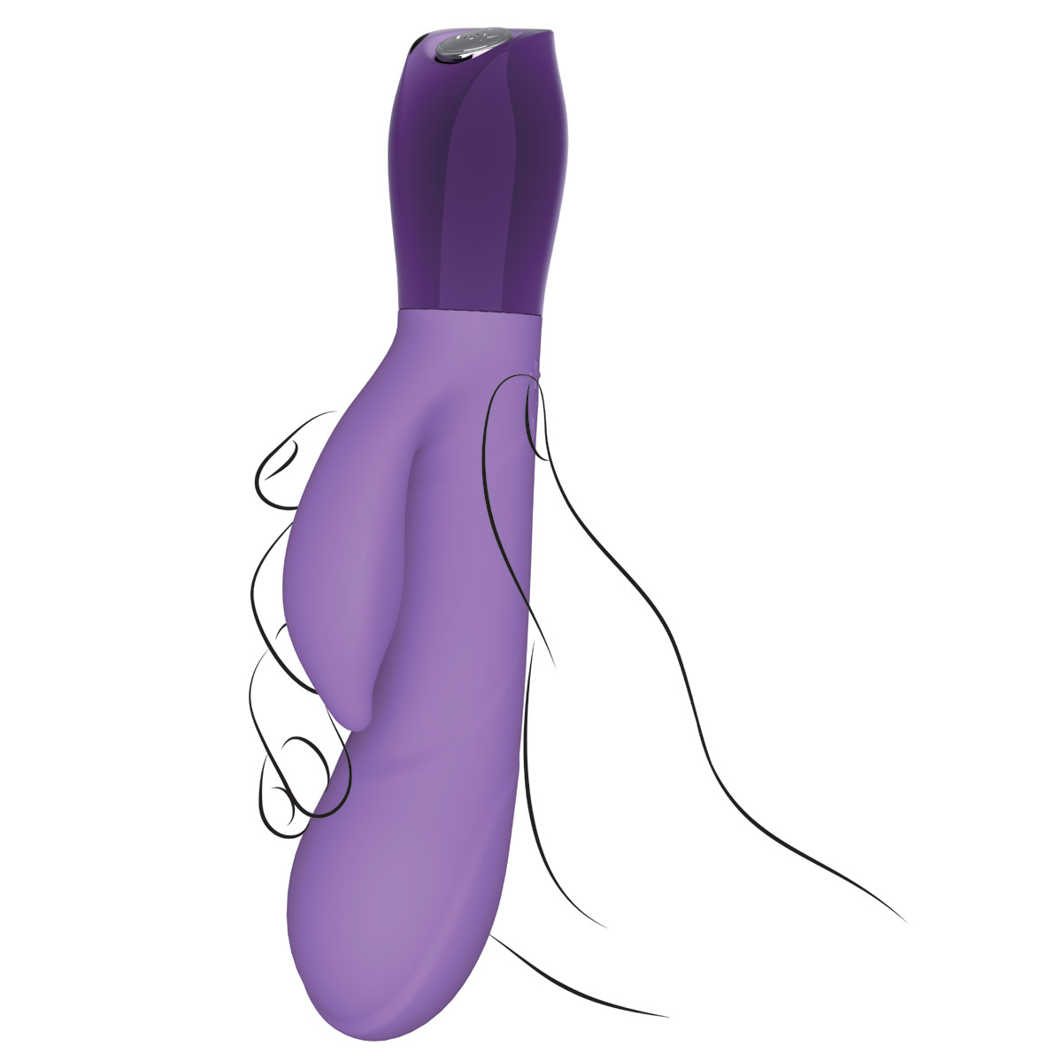 Потрясающий вибратор премиум-класса Jopen Key Ceres Rabbit обладает инновационным дизайном, позволяющим получить двойное наслаждение. Приятная текстура безопасного медицинского силикона фиолетового цвета будет создавать чувственное трение с первых минут погружения, а необычная форма ствола и клиторального отростка подарят волнующий массаж и дразнящее давление самым эрогенным женским зонам. Интенсивная вибрация исходит от двух самостоятельных виброэлементов, управлять многоскоростными режимами которых можно при помощи удобной кнопки в основании рукоятки. В комплекте идет мягенький чехол для хранения вибростимулятора.