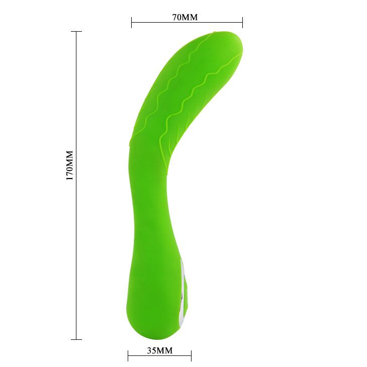 Вибромассажер эргономичной и немного изогнутой формы, средних размеров. Имеет увеличенную в диаметре головку для стимуляции точки G, украшен фактурным рисунком в виде листочка. Водостойкий, перезаряжаемый от аккумулятора. Компактный размер массажера позволяет брать его с собой в путешествия, а футуристическая форма не привлечет внимание и вам не придется отвечать на вопрос о том, что это такое вы там везете! Сделан из гладкого, шелковистого силикона, очень приятного на ощупь. 10 режимов вибрации.