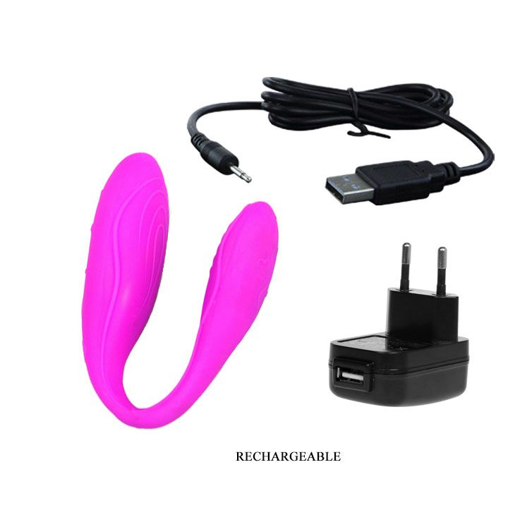 Вибромассажер имеет интеллектуальный режим с запоминанием последней выбранной функции. Выполнен в форме асимметричной подковы, большой отросток - для стимуляции клитора - имеет тонкие ребрышки для усиления эффекта от массажа. Маленький отросток, вагинальный, имеет уплощенную форму для комфортного одновременного проникновения мужчины. Вибрации (30 режимов) передаются обоим партнерам. Компактный размер массажера позволяет брать его с собой в путешествия, а футуристическая форма не привлечет внимание, и вам не придется отвечать на вопрос о том, что это такое вы там везете! Влагонепроницаемый, перезаряжается от аккумулятора. Массажер сделан из бархатистого нежного на ощупь силикона. Рабочая длина - 7,5 см. Диаметр вагинального отростка - 3 см. Диаметр клиторального отростка - 4 см. Пульт работает от 2 батареек ААА (нет в комплекте).