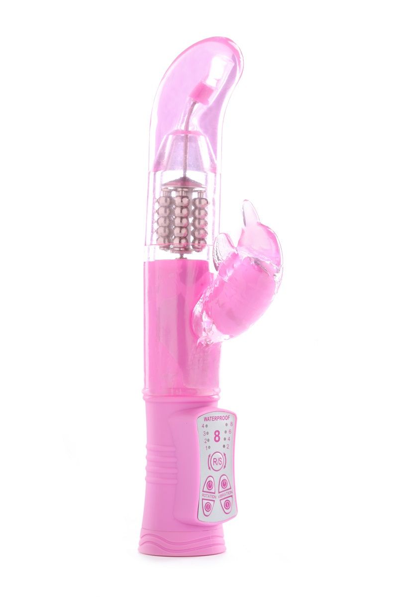 Розовый вибромассажёр для стимуляции G-точки и клитора THE DONATELLA JELLY G. 4 скорости вибрации, 4 режима ротации.