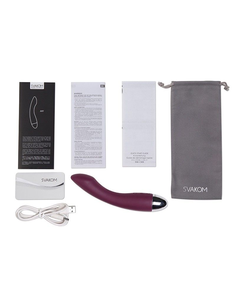 Amy - это водонепроницаемый массажер анатомической формы. Благодаря новшествам, которые ввела компания Svakom, Amy становится лучшим выбором для тех, кому важна безопасность, удобство и эффективность их секс-игрушек. Благодаря своей форме он фокусируется на самых чувствительных зонах женского тела. Элегантный, средних размеров вибратор со стимулятором для точки G приятен не только на взгляд, но и на ощупь. Amy не содержит фталатов и абсолютно гипоаллергенна. Конструкция позволяет использовать игрушку в ванной или душе. A my имеет 6 режимов работы, которыми можно легко управлять с помощью одного прикосновения. Длина - 17 см. Диаметр - 3 см. Время зарядки - 1,5 часа. Время длительного использования - 3 часа.